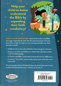 Some of the words in the Bible are tough--especially for kids! This 52-week devotional will expand your children's faith-vocabulary and help them understand the Bible even better.