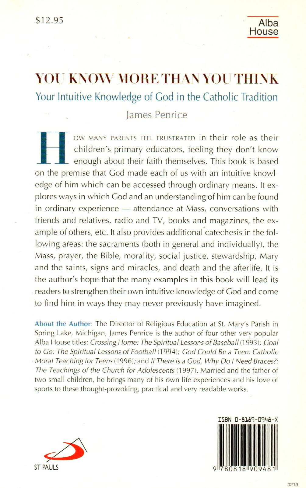 How many parents feel frustrated in their children's primary educators, feeling they don't know enough about their faith themselves. This book is based on the premise that god made each of us with an intuitive knowledge of him which can be accessed through ordinary means. It explores ways in which god and an understanding of him can be found in ordinary experiences -- attendance at mass, conversation with friends and relatives, radio and tv, book and magazines, the examples of other etc.