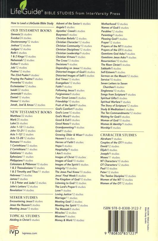 We all long for a full, rich, satisfying life. But how do we fill up the empty places in our souls? How can we quench our thirst for something deeper, more lasting, more meaningful? In this thirteen-session LifeGuide® Bible Study on the second half of John, Douglas Connelly urges you to take a fresh look at Jesus. Here is the opportunity to establish or renew your faith in the One who offers true meaning, true belonging and true life. LifeGuide Bible Studies feature questions for starting group discussions and for meeting God in personal reflection. Also included are leader's notes with information on study preparation, leading small group discussion, and additional insights into specific Bible passages. Presented in a convenient workbook format and featuring the inductive Bible study approach, LifeGuides are proven and popular guides for digging into Scripture on your own or with a group.