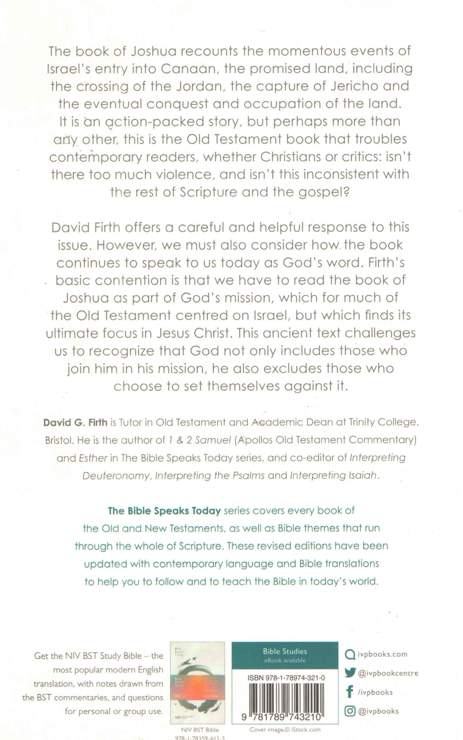 The book of Joshua recounts the momentous events of israel's entry into Canaan, the promised land, including the crossing of the Jordan, the capture of Jericho and the eventual conquest and occupation of the land. It is an action-packed story but perhaps more than any other this is the Old Testament book that troubles contemporary readers, whether Christians or critics: isn't there too much violence and isn't this inconsistent with the rest of Scripture and the gospel