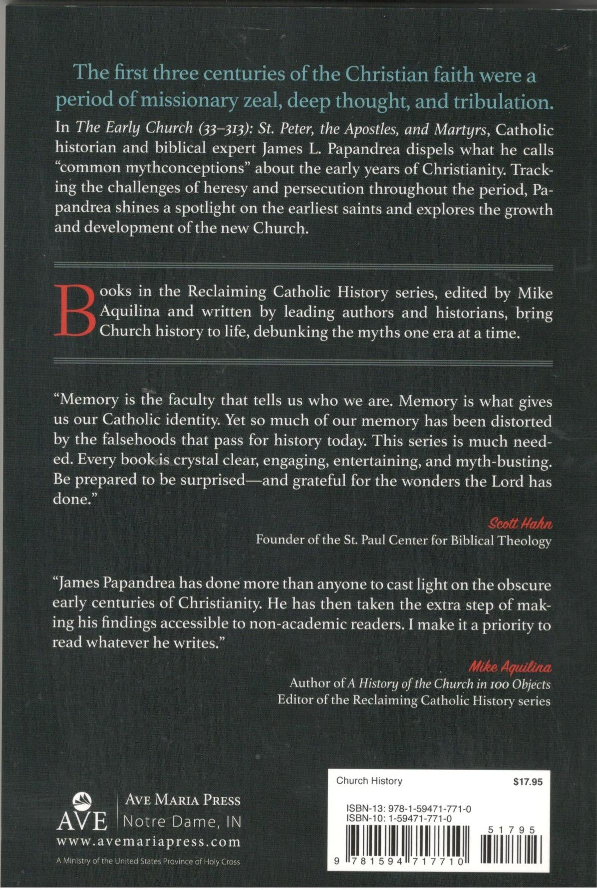In The Early Church (33-313) : St. Peter, the Apostles and Martyrs, Catholic historian and biblical expert James L. Papandrea dispels what he calls "common mythconceptions" about the early years of Christianity. Tracking the challenges of heresy and persecution throughout the period, Papandrea shines a spotlight on the earliest saints and explores the growth and development of the new Church.