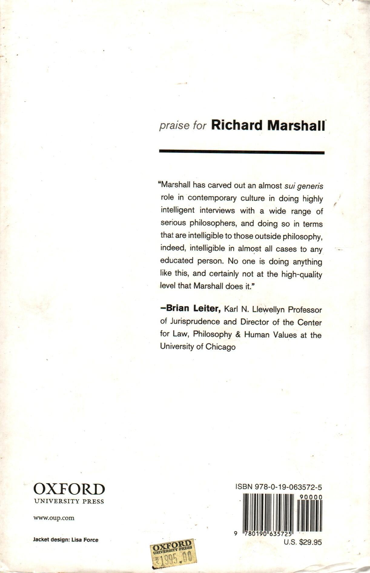 Marshall has carved out an almost sui generis role in contemporary culture in doing highly intelligent interviews with a wide range of serious philosophers and doing so in terms that are intelligible to those outside philosophy indeed intelligible is almost all cases to any educated person. No one is doing anything like this and certainly not at the high quality level that Marshall does it.