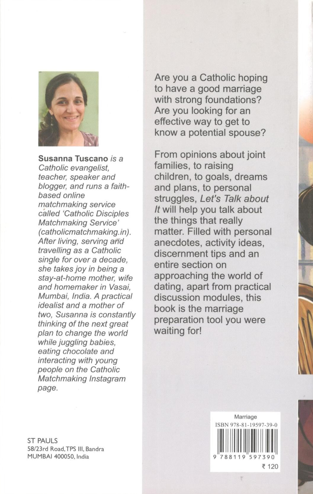 Are you a Catholic hoping to have a good marriage with strong foundations? Are you looking for an effective way to get to know a potential spouse? From opinions about joint families, to raising children, to goals, dreams and plans, to personal struggles, Let’s Talk about It will help you talk about the things that really matter. Filled with personal anecdotes, activity ideas, discernment tips and an entire section on approaching the world of dating, apart from practical discussion modules, this book is the marriage preparation tool you were waiting for!
