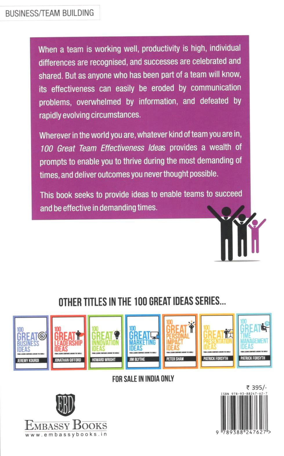 Wherever in the world you are, whatever kind of team you are in, 100 great team effectiveness ideas provides a wealth of prompts to enable you to thrive during the most demanding of times, and deliver outcomes you never thought possible.