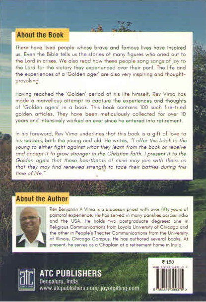 Having reached the Golden Period of his life himself, Rev Vima has made a marvellous attempt to capture the experiences and thoughts of Golden agers in a book. This book contains 100 such fire-tried golden articles. They have been meticulously collected for over 10 years and intensively worked on ever since he entered into retirement.