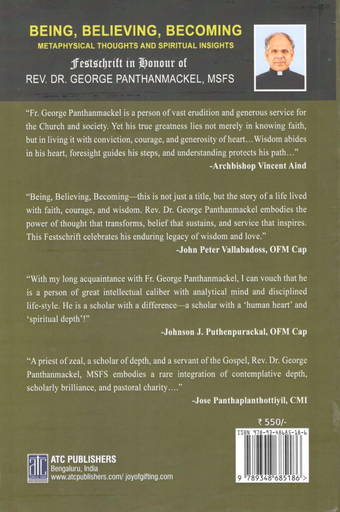 Being, Believing, Becoming- this is not just a title, but the story of a life lived with faith, courage, and wisdom. Rev. Dr. George Panthanmackel embodies the power of thought that transforms, belief that sustains, and service that inspires. This Festschrift celebrates his enduring legacy of wisdom and love.
