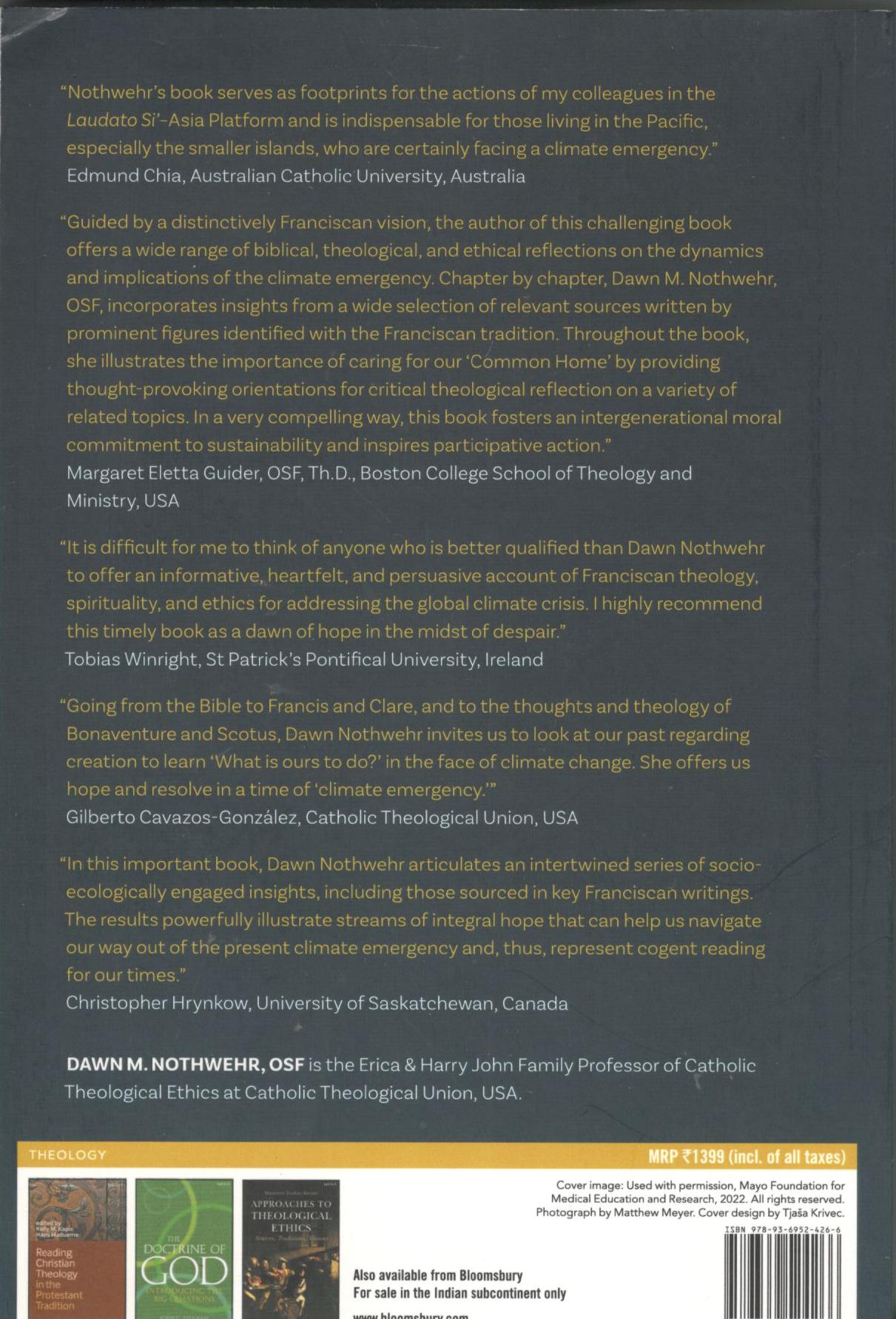 This book explains key Franciscan values and a hope-filled vision of peace, justice, and sustainability for all of creation. Dawn M. Nothwehr engages with a wide variety of topics such as: ecological sin, environmental destruction, a positive Franciscan soteriological path forward, practical tools necessary for conversion, planet-healing actions, and life-sustaining changes.