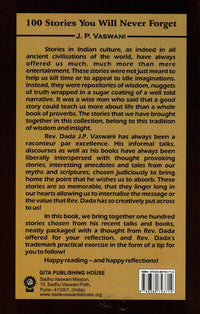 His informal discourses as well as his books have always been liberally interspersed with thought-provoking stories, interesting anecdotes and tales from our myths and scriptures, chosen judiciously to bring home the point that he wishes us to absorb. These stories are so memorable, that they linger long in our hearts, allowing us to internalize the message or the value that he has so creatively put across to us! In this book, we bring together 100 stories chosen from his recent talks and books, neatly packaged.