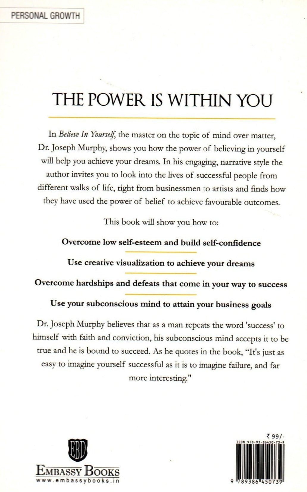 In Believe in Yourself, the master on the topic of mind over matter, Dr. Joseph Murphy, shows you how the power of believing in yourself will help you achieve your dreams. In his engaging, narrative style the author peeps into the lives off successful people from different walks of life, right from businessmen to artists and finds how they have used the power of belief to achieve favorable outcomes.