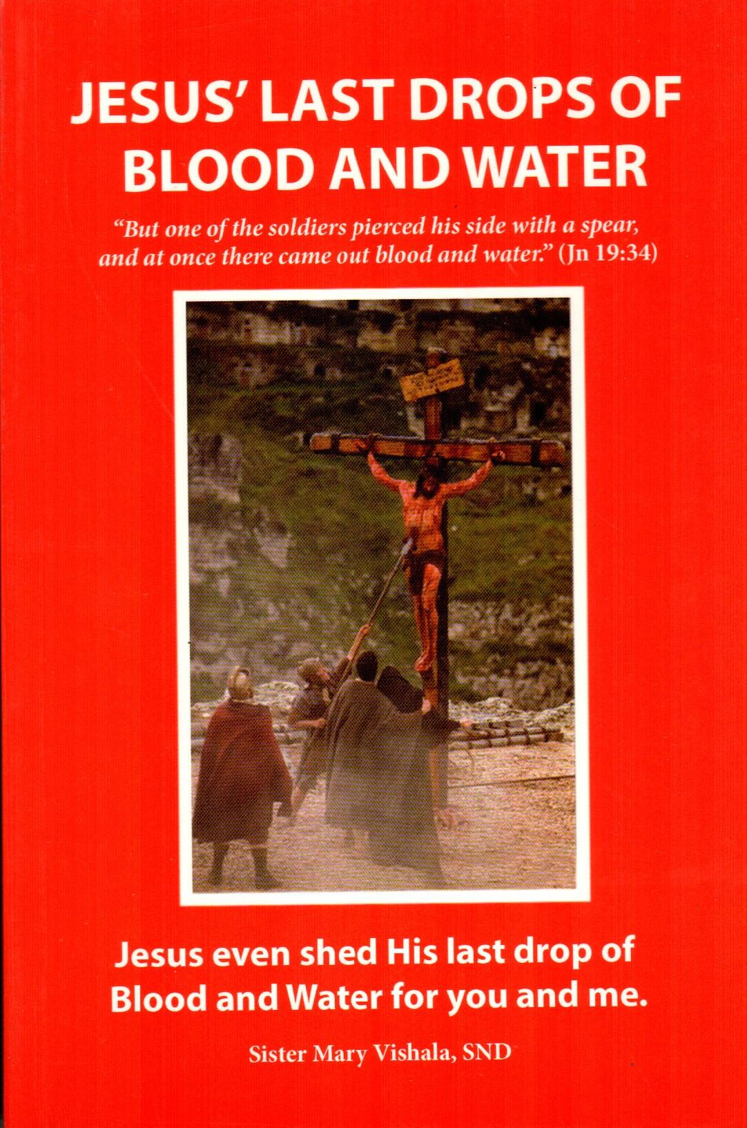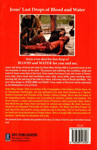 Jesus last drops of blood and water by Sister Mary vishala SND is a powerful book on the last moments of Jesus on the Earth the passion and suffering the crucifixion death on the burial of Jesus come alive in the book every sweat the heavy cross the crown of Thorns every steps every insult and humiliation every whip every strike every mocking every piercing nail the piercing of the side by a lance and every drop of Blood and water you and I were always in Jesus Mind and Heart every reader of this book will be captivated by the redemptive love of Christ sister Mary vishala SND is a member of the congregation of the sisters of Notre dame as an educational psychologist she has dedicated more than three decades as a teacher student counsellor and principles of the teacher training college she is also the author.
