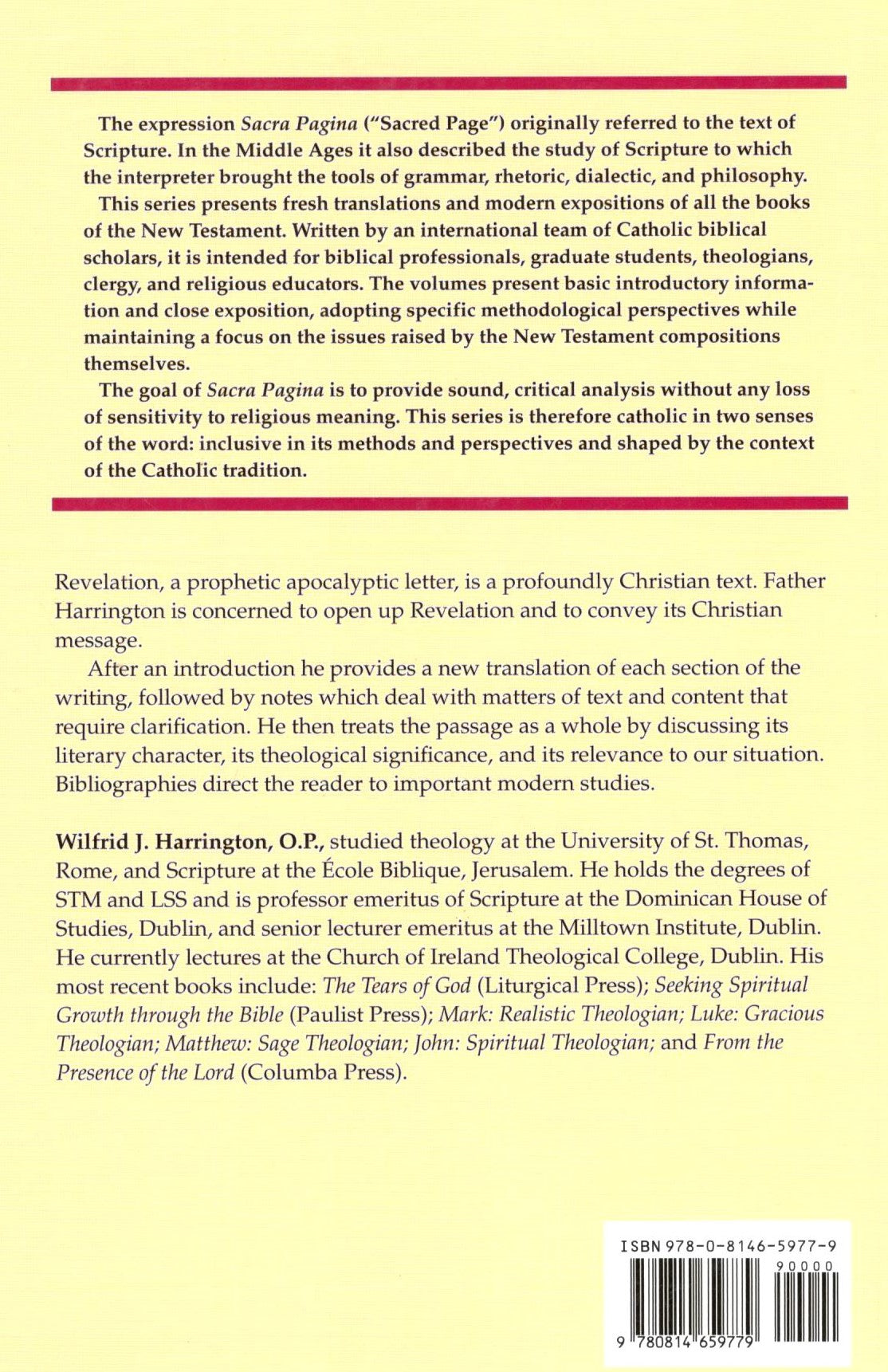 More than any other New Testament writing the Book of Revelation demands commentary. Its often-bewildering text is easily open to less than scholarly interpretation.Father Harrington brings his scholarship to the Book of Revelation and conveys its Christian message. He puts the work in its historical and social setting?a first-century CE province of the Roman Empire?and explores its social and religious background and its literary character.