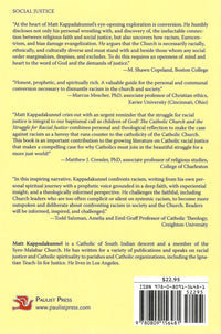 This book is an invitation to respond to the prophetic call, stemming from Baptism, to promote the dignity of all people based on the belief that each person is created in the image of God, particularly those who suffer racial injustice. Kappadakunnel confronts racism writing from his own personal spiritual journey with a prophetic voice, grounded in a deep faith, with experiential insight, and a theologically informed perspective.