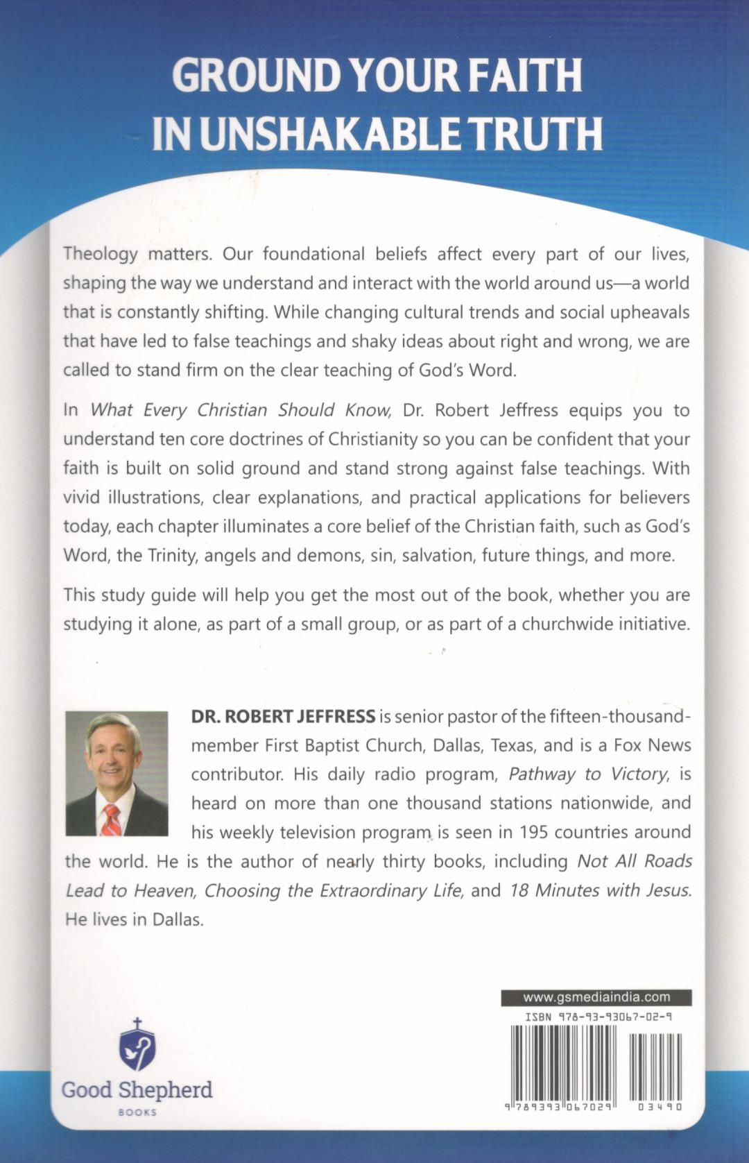 In What Every Christian Should Know, Dr. Robert Jeffress equips you to understand ten core doctrines of Christianity so you can be confident that your faith is built on solid ground and stand strong against false teaching. Each chapter illuminates a core belief of the Christian faith, such as God's Word, the Trinity, angels and demons, sin, salvation, future things, and more.